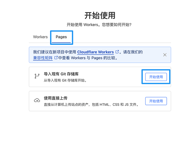 这样,存储库部分就完成了。我们来新建一个Cloudflare Pages 站点,在左侧找到“计算(Workers)“并点击进入,进入页面后点击右上角“创建
