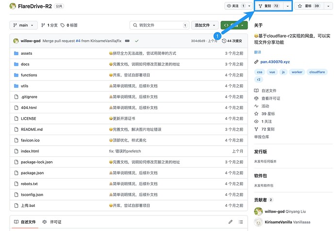 首先登录github,点击后方链接,进入项目仓库:FlareDrive-R2