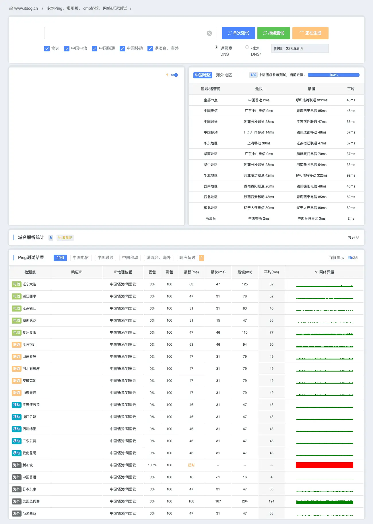 测试环境:通过多地服务器(中国大陆、香港、美国、欧洲等)对站点进行了访问测试