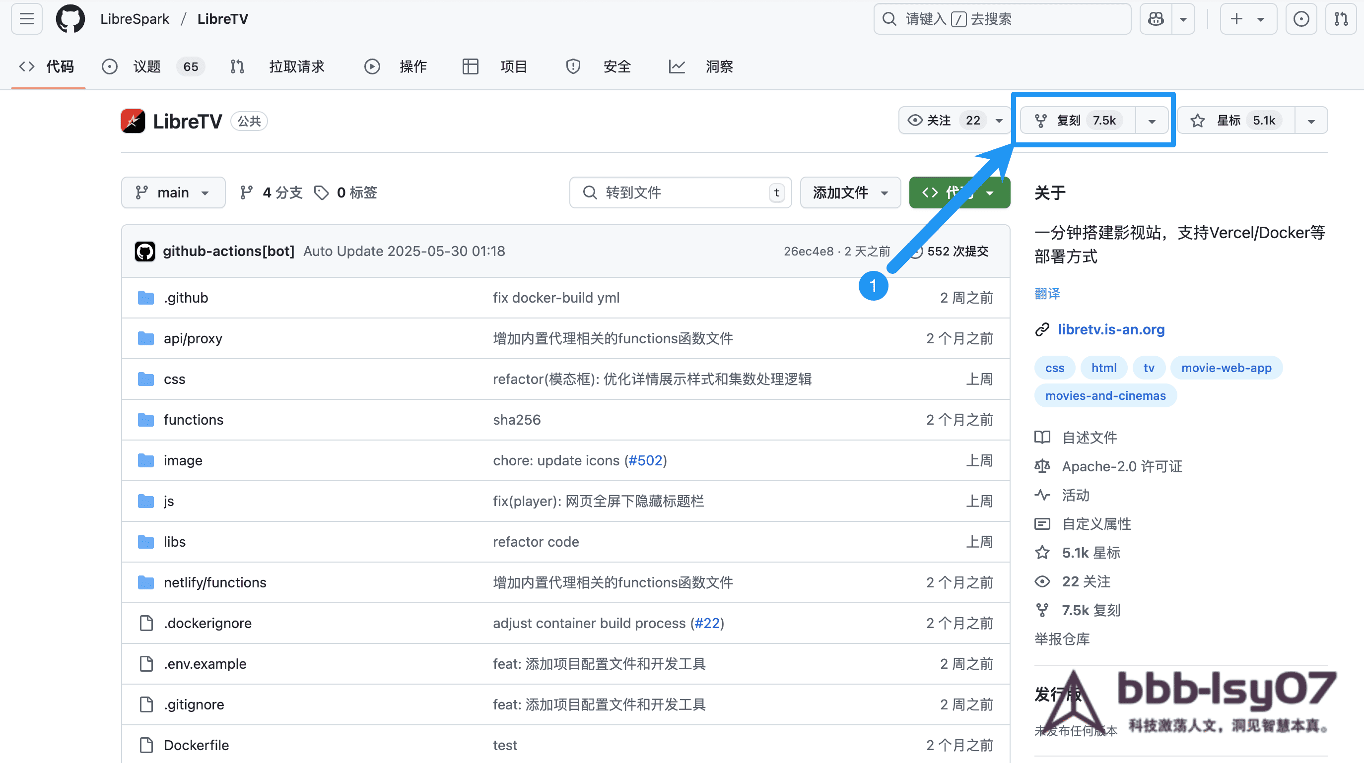 1.1Fork(克隆)https://github.com/LibreSpark/LibreTV 到您的 GitHub 账户