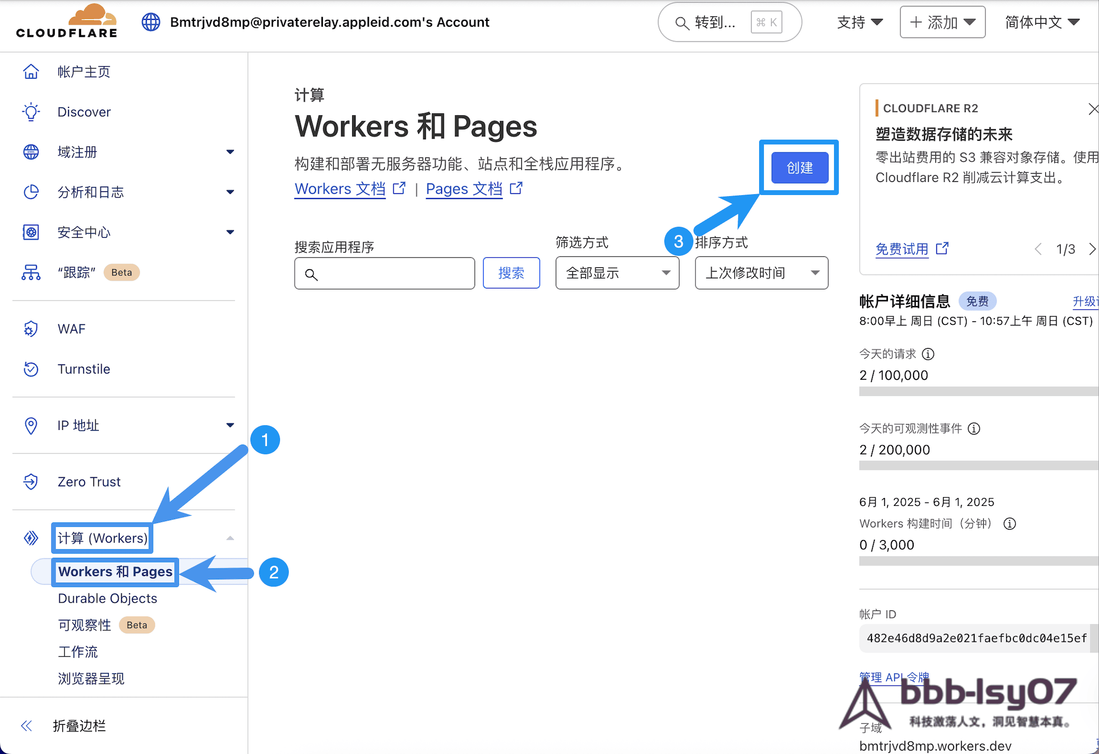 2.1登录 Cloudflare Dashboard,进入 Pages 服务