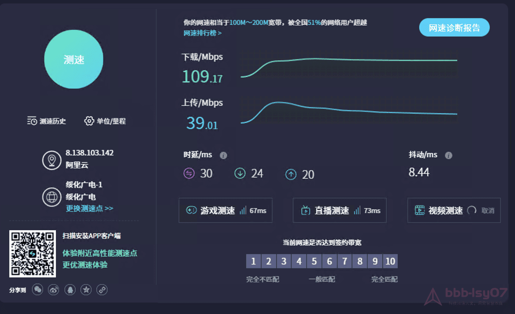 网络测试显示,高峰期下载与上传速度稳定在100Mbps左右,满足AI开发中数据传输与模型同步的需求(结果因网络环境而异,仅供参考)。